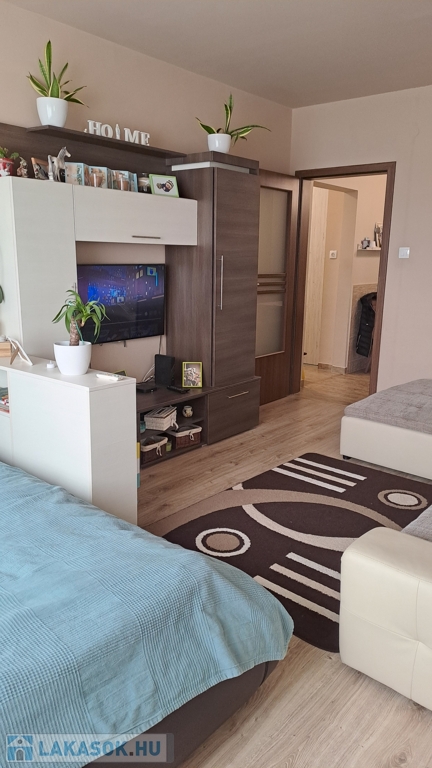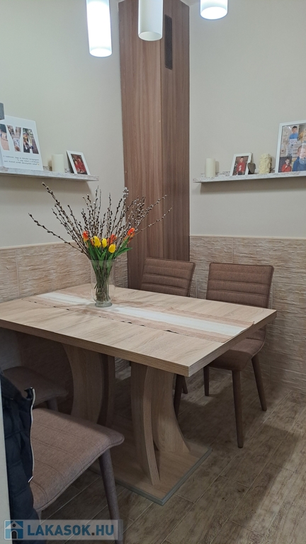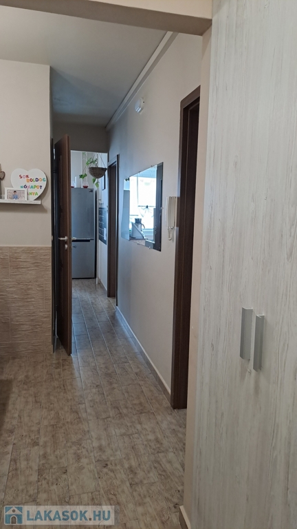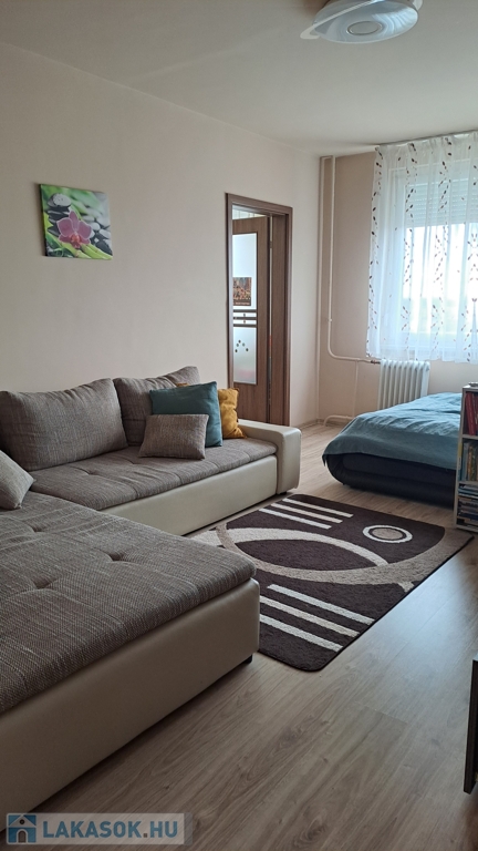 Nyíregyháza Jósavárosban szigetelt liftes társasház 6. emeletén eladásra kínálunk egy felújított 57 nm-es, 1+2 szobás, konyha + étkezős, redőnnyel felszerelt műanyag nyílászárós, biztonsági bejárati ajtós, új beltéri ajtókkal szerelt, mért távhős, fürdőszoba és külön wc kialakítású, laminált padló és járólap burkolatú, klimatizált lakást.