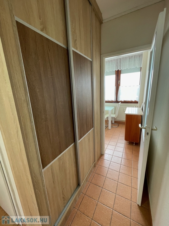 Kiemelendő az esztétikusan kialakított előszoba, ahol egy praktikus, beépített gardróbszekrény segíti a tárolást. A konyha mellett további beépített szekrény kapott helyet, amely akár kamraként is használható.