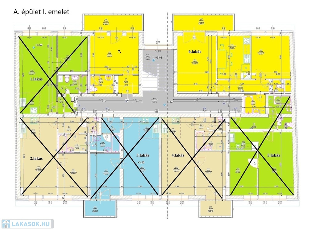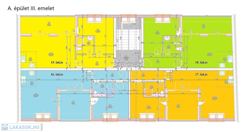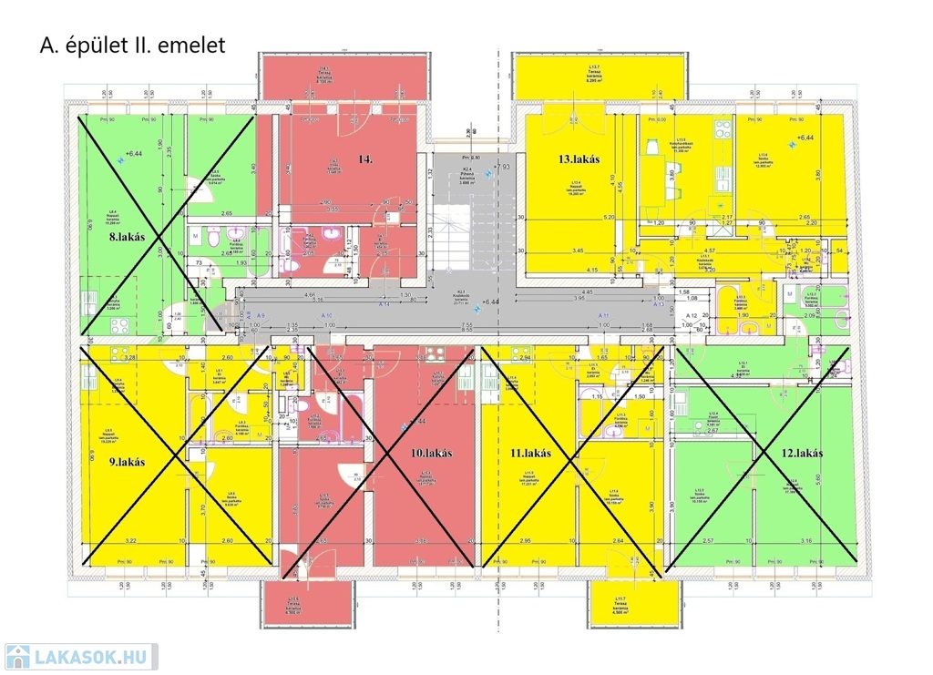 L6: 1. emelet, 61,02 m2 (8,3 erkély) N+1 szoba Ár: 56.748.600 FtL13: 2. emelet, 61,2 m2 (8,3 erkély) N+1 szoba Ár: 56.916.000 FtL15: Tetőtér, 58,62 m2 (12,61 erkély) N+1 szoba Ár: 54.516.600 FtL16: Tetőtér, 63,06 m2 (9,36 erkély) N+1 szoba Ár: 58.645.800 FtL17: Tetőtér, 60,55 m2 (9,02 erkély) N+1 szoba Ár: 56.311.500 FtL18: Tetőtér, 55,7 m2 (11,34 erkély) N+1 szoba Ár: 51.801.000 Ft