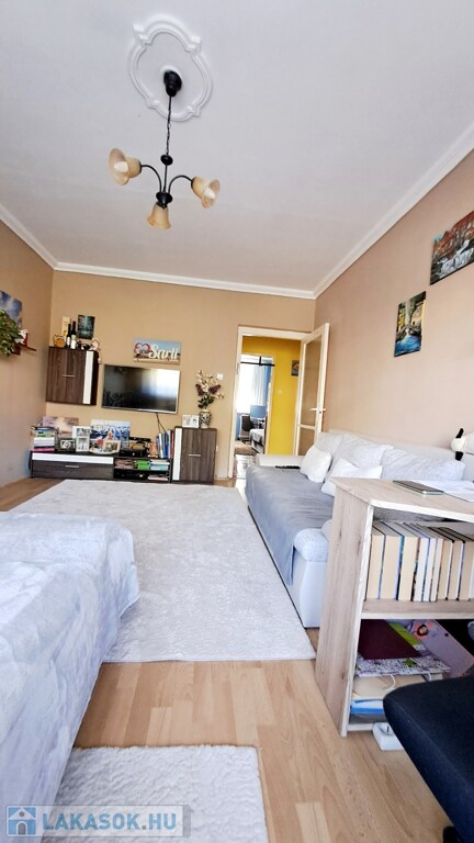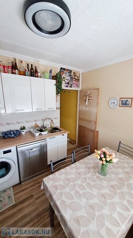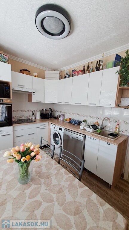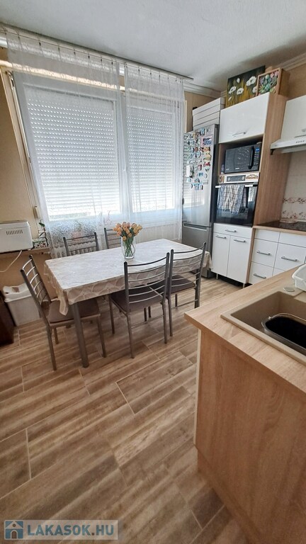 A lakás külön fürdőszobás és WC-s, mért távhővel felszerelt, műanyag nyílászárókkal és redőnnyel. Saját erkéllyel és tárolóval rendelkezik, burkolatai járólap és laminált parketta. A fürdőszoba felújított, a konyha egyedi bútorral beépített. Tehermentes, költözés megegyezés szerint.