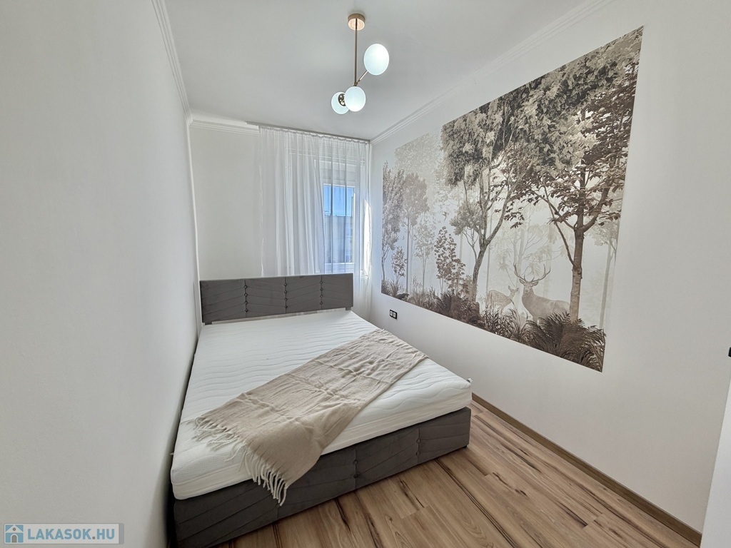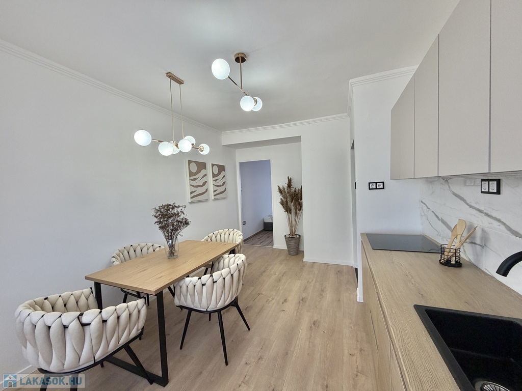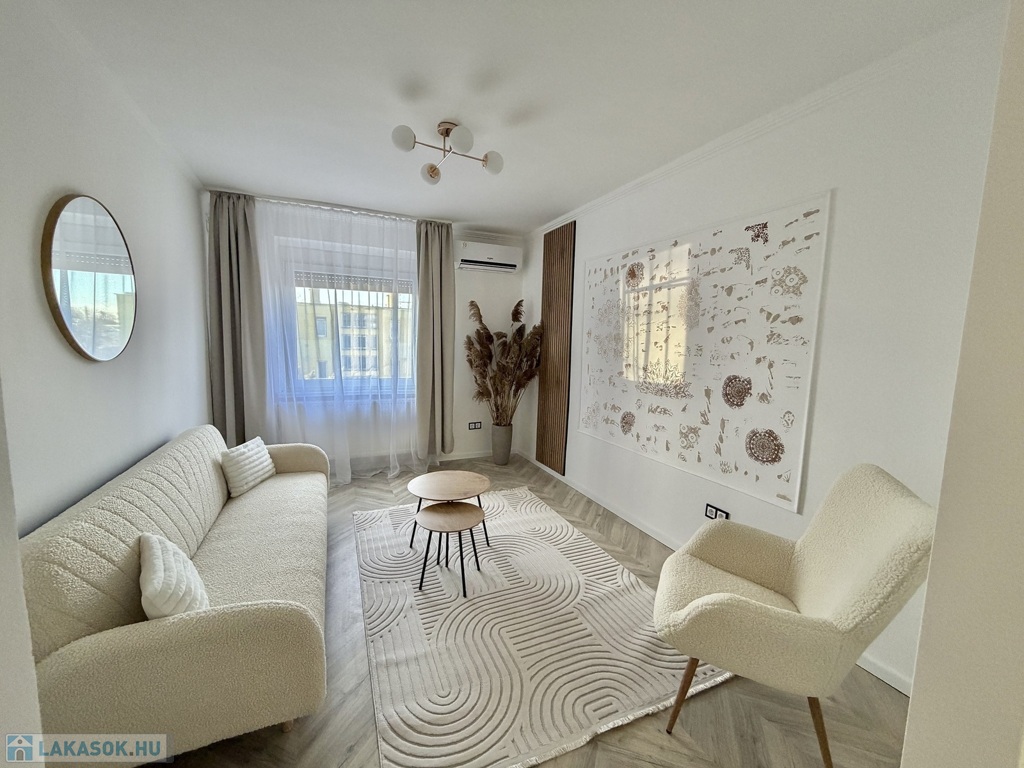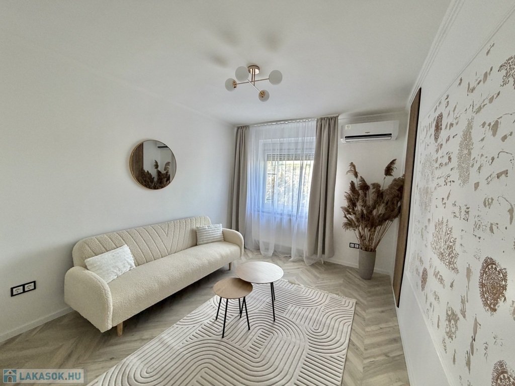 A lakás teljes körű felújításon esett át, mely során elektromos áram és vízvezeték csere is történt, új fürdőszoba, új konyha, új beltéri és bejárati ajtó, új hűtő-fűtő klíma, új bútorok kerültek beépítésre, egyedi gázfűtéses, redőnnyel, rovarhálóval szerelt műanyag nyílászárós, új laminált padló, járólap burkolatú.