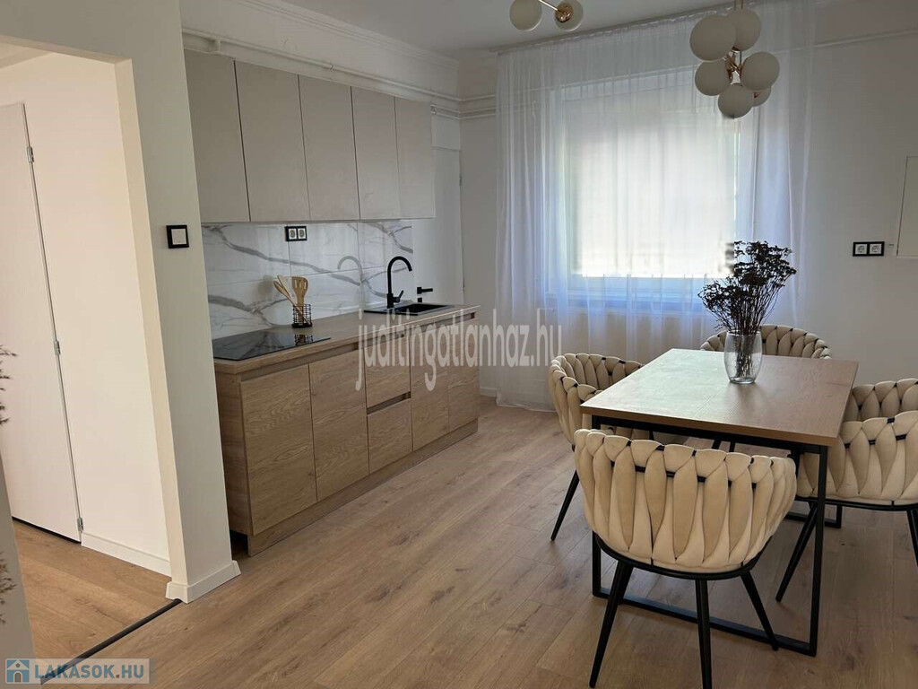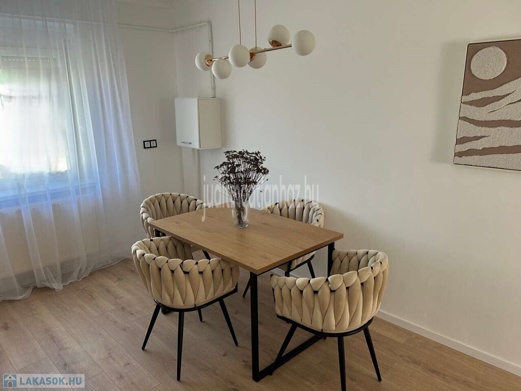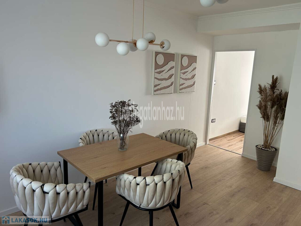 Nyíregyházán a Megyei kórház közelében eladó 59 m2-s, három különnyíló szobás, nagy konyha+étkező, külön fürdőszoba és wc, kamra, erkélyes, műanyag nyílászárós mely redőnnyel felszerelt, egyedi gáz és klíma fűtésű felújított lakás téglaépítésű szigetelt 6 lakásos zárt udvaros társas házban a második emeleten. Az ingatlan 2025-ben teljes felújításon esett át, vezeték és csövek cseréje megtörtént, új burkolat, minőségi falfestés. Az ingatlan ára a fotón látható teljes új bútorzattal együtt értendő, továbbá tartozik hozzá egy 13 m2-s udvari garázs az alagsorban saját tároló és saját udvari kert rész. Parkolni az utcán lehet díjtalanul. Az igényesen felújított és berendezett tehermentes ingatlanba költözni akár azonnal!