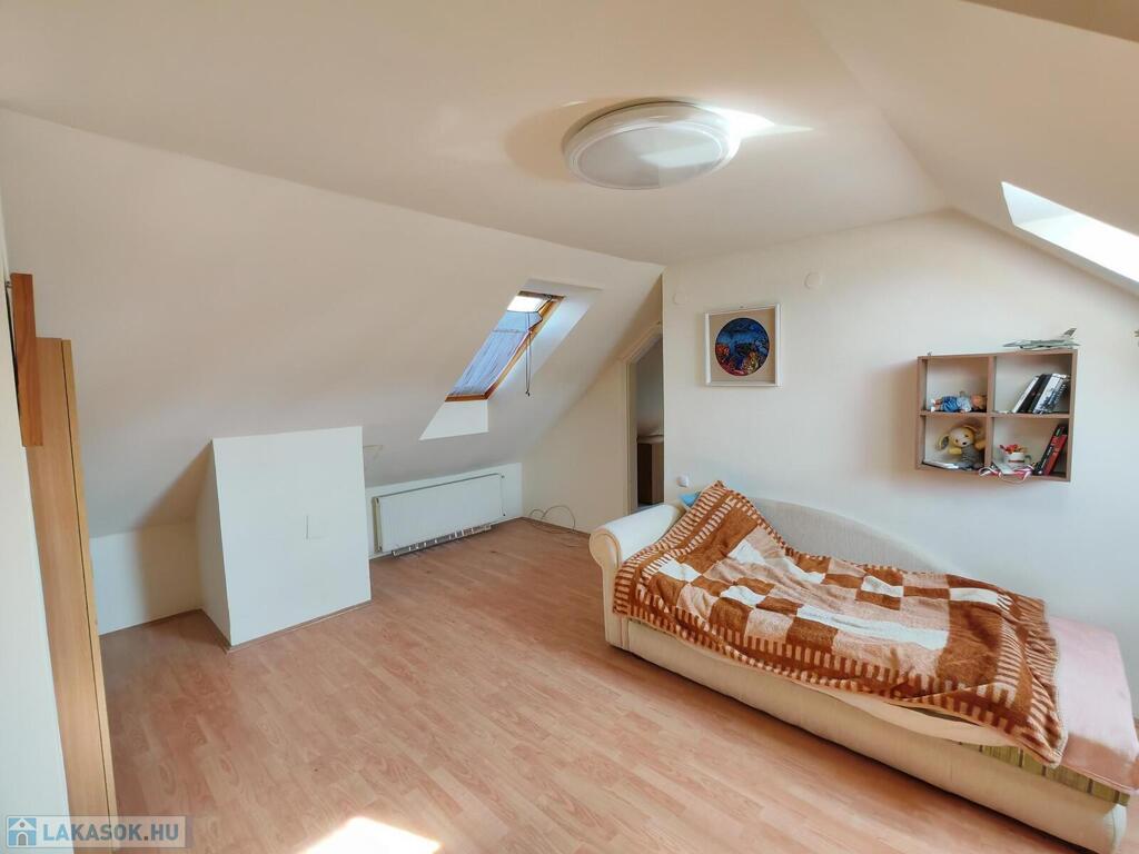 felső szint: előtér, 2 hálószoba, tágas fürdőszoba káddal és WC-vel