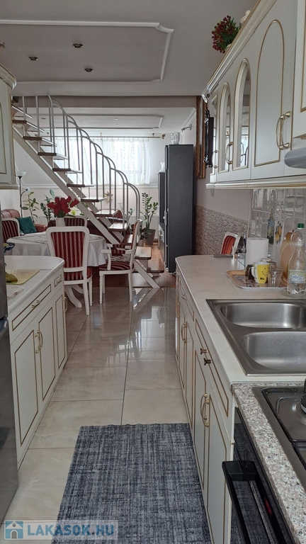 A lakás alsó szintjén: 2 szoba, nappali, konyha, fürdőszoba, külön helyiségben wc