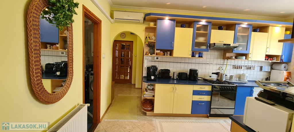 klimatizált,egyedi, beépített, gépesített konyhabútorral,redőnnyel felszerelt műanyag nyílászárós,biztonsági bejárati ajtós,laminált padló és járólap burkolatú,