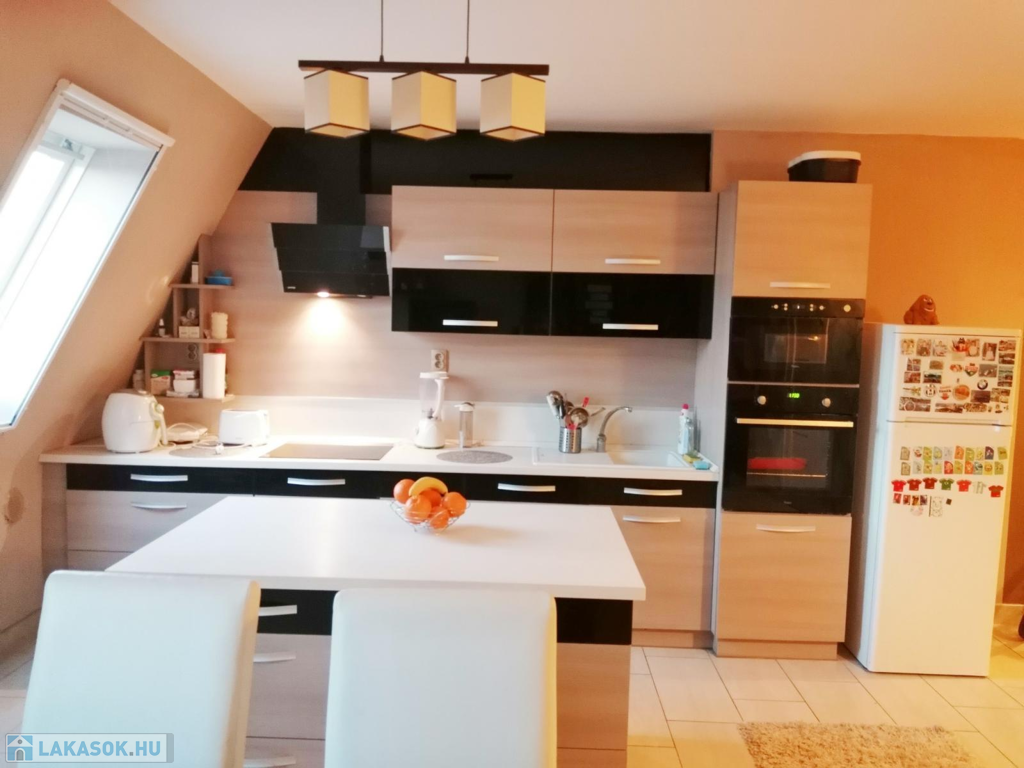 Nyíregyháza Malomkertben a Kórházhoz közel eladó ez a 83m2-es, 2 szoba+ nappalis, étkező konyhás, jó állapotú, egyedi gázfűtéses, ötödik emeleti lakás! Egyéb jellemzők: klíma, 4. emeletig lift, egyedi konyha gépesítve, szép beltéri ajtók, külön fürdő wc, az ablakokon árnyékoló és roló, beépített szekrény, műanyag bejárati ajtó, közös tároló, 20m2 tetőtér beépíthető. Az ingatlan téglaépítésű, szigetelt, a lakás tehermentes. Akár teljes bútorzattal megvásárolható!Az ingatlan azonosítója: 61048Érdeklődni: +36306982324 Az ingatlan azonosítója: 61048 Érdeklődni: +36306982324