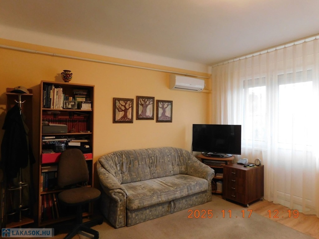 A környék kiemelkedően jó: minden fontos szolgáltatás pár perc sétára található (Városháza 5 p, Színház 2 p, Piac 5 p, busz 1 p).A lakás frissen felújított: új elektromos hálózat, modern bejárati ajtó, klíma, redőnyös műanyag ablakok szúnyoghálóval, valamint új gázkonvektoros fűtés. Két loggia is tartozik hozzá.