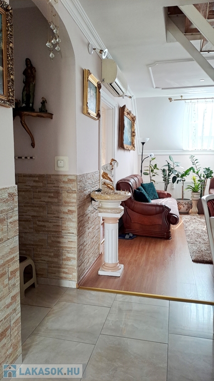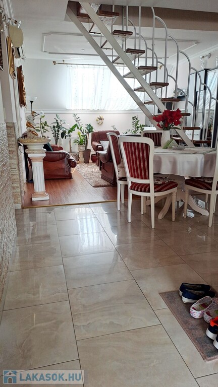 Nyíregyháza Malomkertben, a Kert utcán eladásra kínálok egy 75+28 m2-es, 4 szoba nappalis, tégla építésű, szigetelt, műanyag nyílászáróval, redőnnyel és reluxával szerelt, belső szintes, harmadik emeleti társasházi klimatizált lakást, mely világos, tágas terekkel rendelkezik. A fürdőszoba és wc külön helyiségben helyezkedik el. Laminált padló és csempe burkolatú. Fűtése: egyedi gázfűtés. Az alsó szinten van: 2 hálószoba, nappali, konyha, kamra, fürdő, wc. A tágas fürdőszobában fürdőkád és zuhanykabin. A felső szinten 2 hálószoba. A lakáshoz egy kisebb erkély és egy tágasabb terasz tartozik. Közös tároló. A mélygarázsban autóbeálló bérelhető. A társasház jó elhelyezkedésű, kedves szomszédok, jó lakóközösség. A lakás igényes, modern kialakítású, tehermentes.Az ingatlan azonosítója: 98013Érdeklődni: +36703610015 Az ingatlan azonosítója: 98013 Érdeklődni: +36703610015