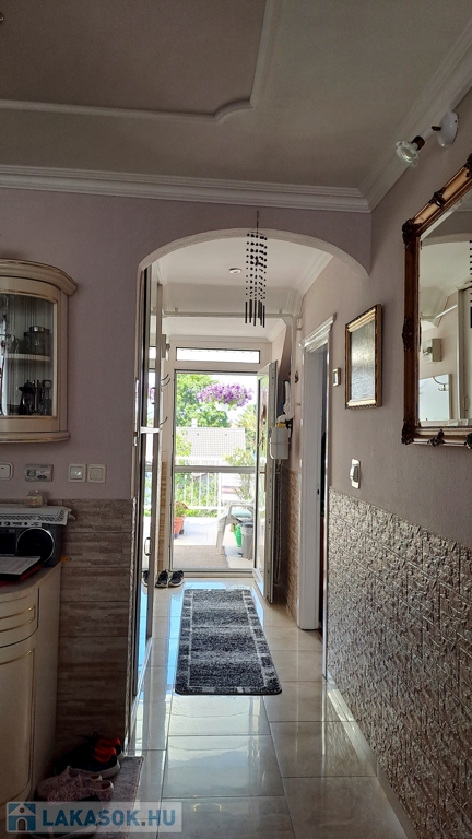 Alsó szint: nappali, 2 hálószoba, konyha + étkező, kamra, fürdőszoba (káddal és zuhanykabinnal), külön WC