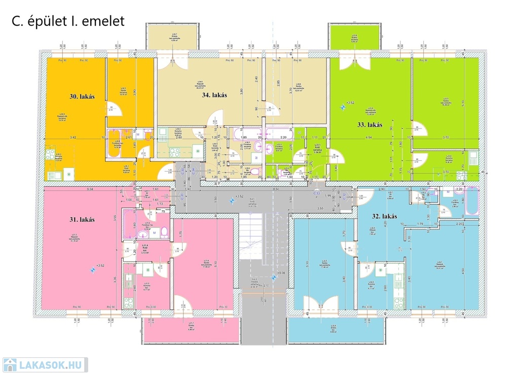 L31: 1. emelet, 77,32 m2 (8,73 erkély) N+1 szoba Ár: 71.907.600 Ft L32: 1. emelet, 75,22 m2 (8,87 erkély) N+1 szoba Ár: 69.954.600 FtL33: 1. emelet, 70,68 m2 (4,77 erkély) N+1 szoba Ár: 65.732.400 FtL36: 2. emelet, 73,61 m2 (8,4 erkély) N+1 szoba Ár: 68.457.300 FtL37: 2. emelet, 71,37 m2 (8,4 erkély) N+1 szoba Ár: 66.374.100 FtL38: 2. emelet, 70,41 m2 (4,5 erkély) N+1 szoba Ár: 65.481.300 FtL40: 3. emelet, 62,9 m2 (11,92 erkély) N+1 szoba Ár: 58.497.000 FtL41: 3. emelet, 59,64 m2 (13,75 erkély) N+1 szoba Ár: 55.465.200 FtL42: 3. emelet, 58,74 m2 (13,75 erkély) N+1 szoba Ár: 54.628.200 FtL43: 3. emelet, 63,1 m2 (11,92 erkély) N+1 szoba Ár: 58.683.000 Ft