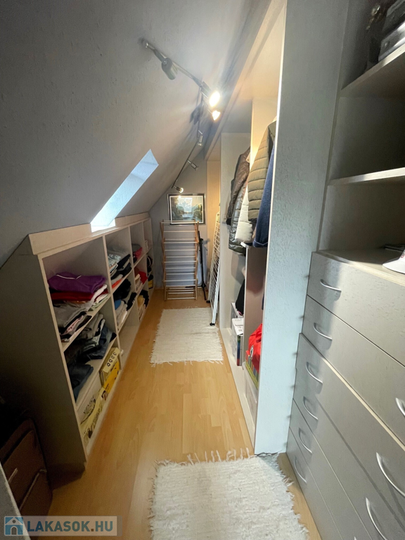 felső szinten: 2 szoba, gardrób, tágas fürdőszoba található.