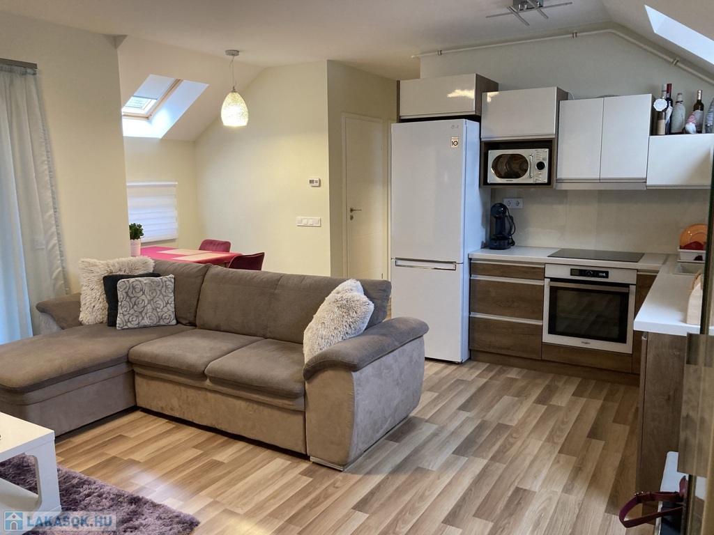 Nyíregyháza Belváros közelében , de közel a Bujtosi Tóhoz eladásra kínálok egy egyedi tervezésű igényes kivitelezéssel minőségi anyagokból épült társasházi lakást, mely 2020-ban épült, 59 m2, erkélyes 2 szoba+gardrob, amerikai konyha nappali elosztással, kelet-nyugat tájolással. Műanyag nyílászárókkal szerelt, redőnyözött, Velux tetőtéri ablakokkal kiegészítve , így egy világos napfényes otthont kapunk. Egyedi, beépített gépesített konyhabútorral , beépített szekrényekkel. Fűtéséről gázcirkó kazán gondoskodik-padlófűtéssel, hűtő-fűtő klímával, nagyon kedvező fenntartási költségekkel. Elektromos kapuval védett zárt udvarban saját parkoló tartozik a lakáshoz.Az ingatlan azonosítója: 93599Érdeklődni: +36303275386 Az ingatlan azonosítója: 93599 Érdeklődni: +36303275386