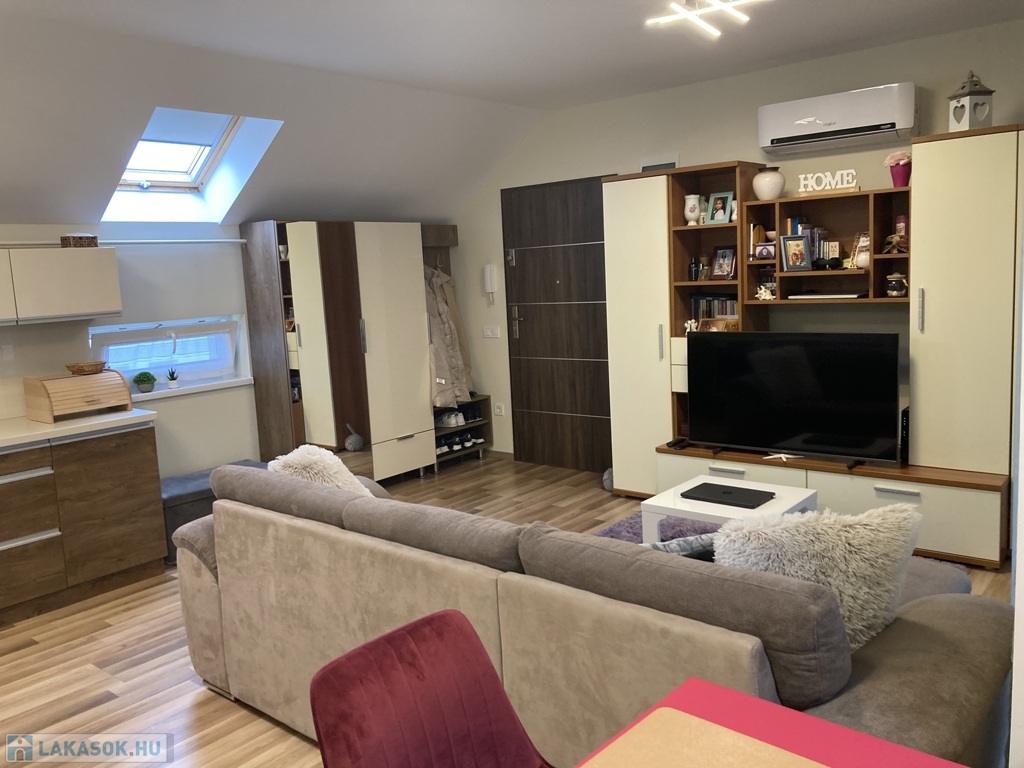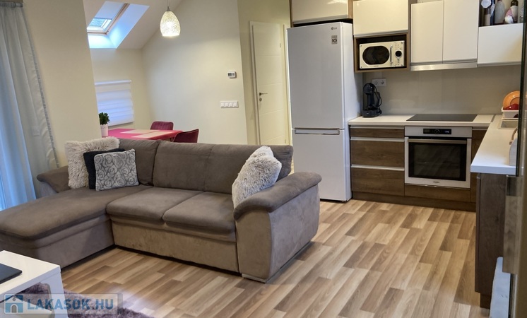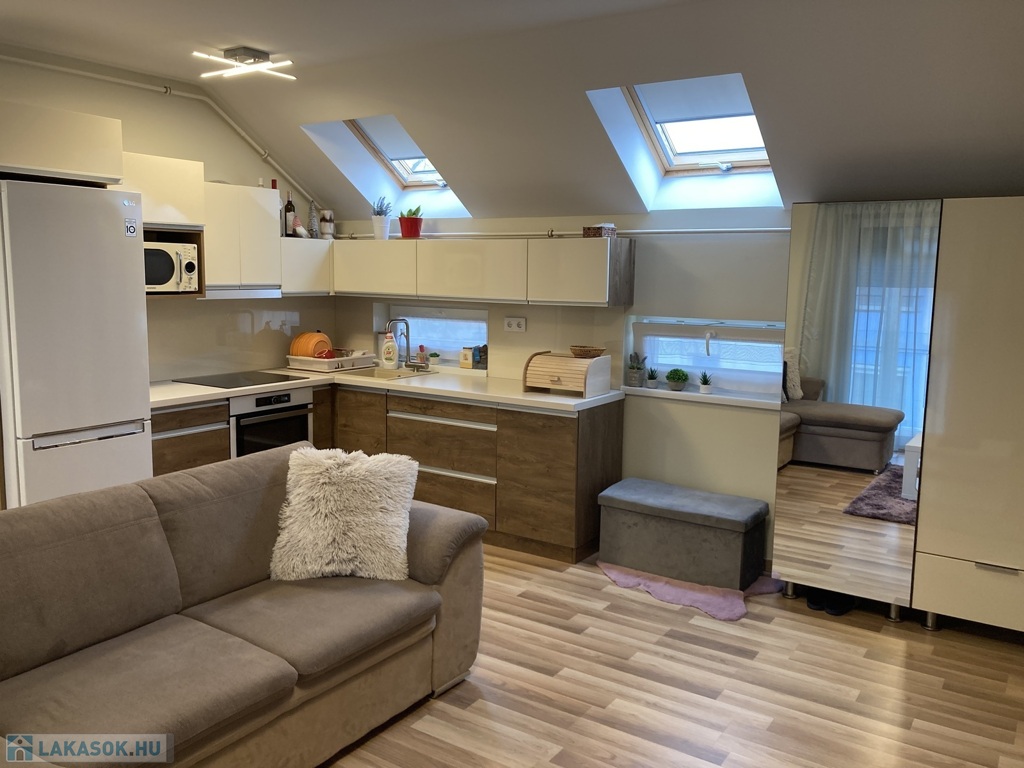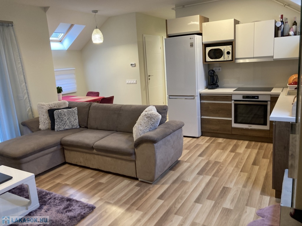 Nyíregyháza Belváros közelében , de közel a Bujtosi Tóhoz eladásra kínálok egy egyedi tervezésű igényes kivitelezéssel minőségi anyagokból épült társasházi lakást, mely 2020-ban épült, 59 m2, erkélyes 2 szoba+gardrob, amerikai konyha nappali elosztással, kelet-nyugat tájolással. Műanyag nyílászárókkal szerelt, redőnyözött, Velux tetőtéri ablakokkal kiegészítve , így egy világos napfényes otthont kapunk. Egyedi, beépített gépesített konyhabútorral , beépített szekrényekkel. Fűtéséről gázcirkó kazán gondoskodik-padlófűtéssel, hűtő-fűtő nagyon kedvező fenntartási költségekkel. Elektromos kapuval védett zárt udvarban saját parkoló tartozik a lakáshoz.Az ingatlan azonosítója: 93672Érdeklődni: +36709442086 Az ingatlan azonosítója: 93672 Érdeklődni: +36709442086