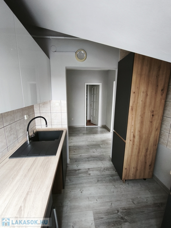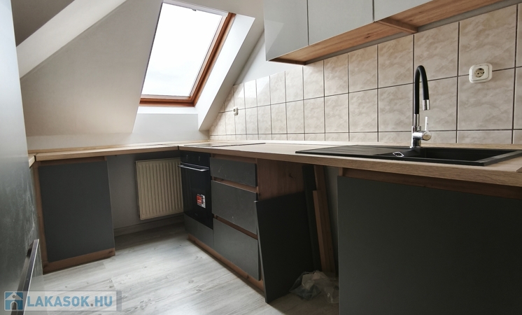 Praktikus elrendezés: Egyedi beépített konyha, külön WC, a fürdőszobában pedig kád és zuhanyzó is található.