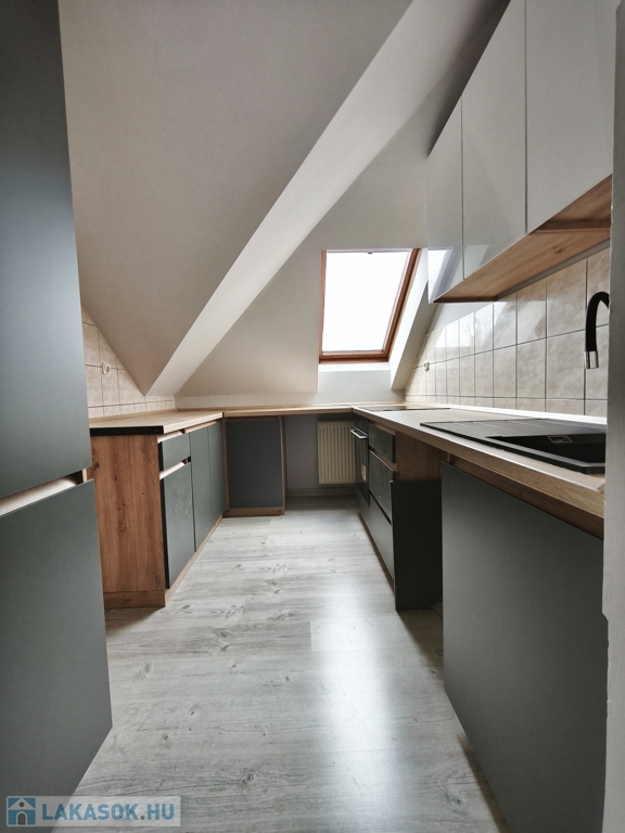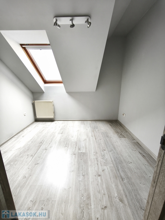 Korszerű gépészet: Egyedi gázfűtés újszerű kazánnal, Velux tetőtéri és műanyag nyílászárók.