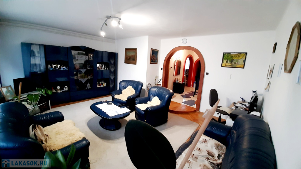 A lakás alsó szintjén tágas nappali, konyha, étkező, kamra, fürdőszoba-WC lett található, a felső szint 4 külön nyíló szoba, fürdőszoba-WC került kialakításra. A tehermentes lakáshoz tartozik egy 15 nm-es garázs is melynek árát a vételár már tartalmazza.