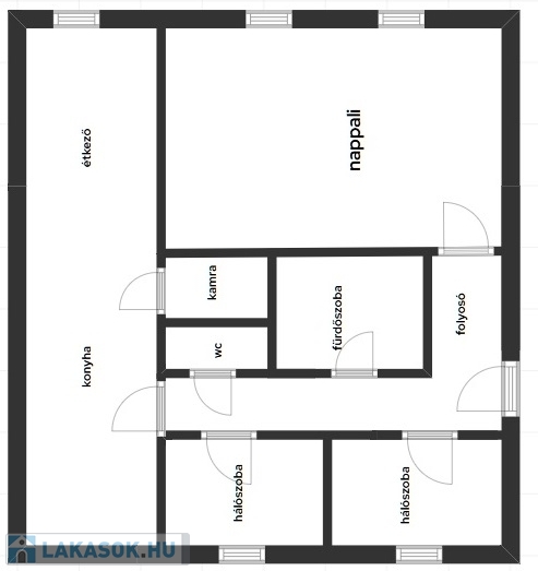 A lakás két hálószobával, nappalival, valamint konyha–étkezővel rendelkezik, így családok számára is ideális választás lehet.
