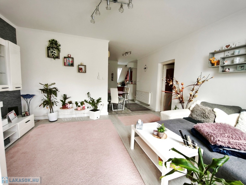 Az ingatlan kiváló elosztású, külön gardróbhelyiséggel és erkéllyel rendelkezik, így ideális választás családok számára, de befektetésnek is remek lehetőség. A lakásban műanyag, illetve hőszigetelt fa nyílászárók találhatók, a burkolatok járólapból és laminált parkettából állnak.