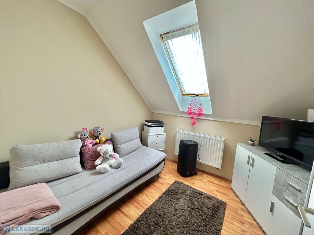 Az ingatlan kiváló adottságokkal rendelkezik akár bővíthető is: a tetőtér alkalmas két különálló szoba és egy fürdőszoba befogadására, így a lakótér rugalmasan az új tulajdonos igényeire szabható.