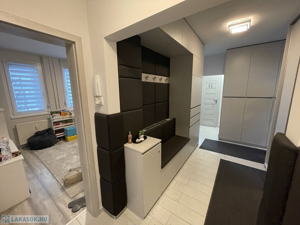 Nyíregyháza belvárosának szívében, a Korzó üzletház közvetlen szomszédságában eladó egy első emeleti, 87 m²-es, tágas kialakítású, három szoba + nappalis, erkélyes lakás, amely vezeték szintig felújított állapotban várja új tulajdonosát. Az ingatlan igényes, egyedi tervezésű, gépesített konyhabútorral, minőségi burkolatokkal és prémium beltéri ajtókkal rendelkezik, valamint három darab klímaberendezés gondoskodik a komfortos hőérzetről. A műanyag nyílászárók redőnnyel és reluxával felszereltek, a szigetelt, téglaépítésű társasház pedig rendezett, csendes környezetet biztosít. A lakásban négy nagyméretű, beépített szekrény található, melyek a vételár részét képezik. Fenntartási költsége rendkívül kedvező, a közös költség mindössze 7.000 Ft, ami a nagy alapterülethez képest különösen előnyös. Kiváló elhelyezkedésének köszönhetően nemcsak otthonnak ideális, hanem irodai használatra vagy befektetési célra is tökéletes választás, hiszen a belvárosi lokáció hosszú távon is értékálló.Az ingatlan azonosítója: 99582Érdeklődni: +36702560693 Az ingatlan azonosítója: 99582 Érdeklődni: +36702560693