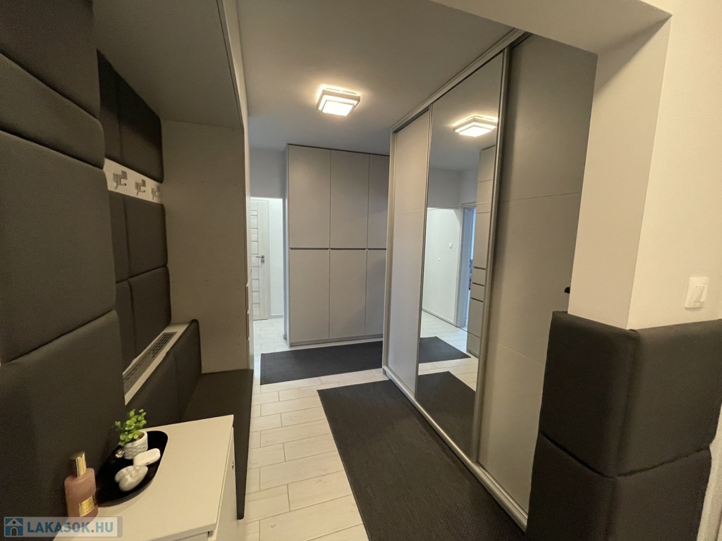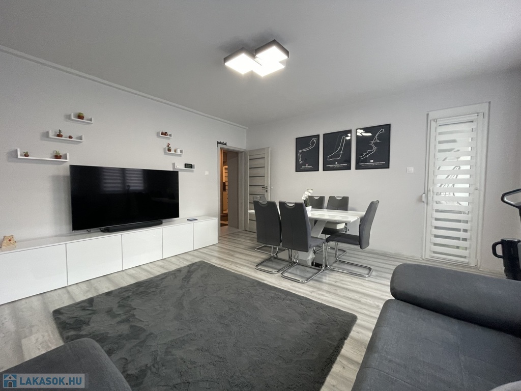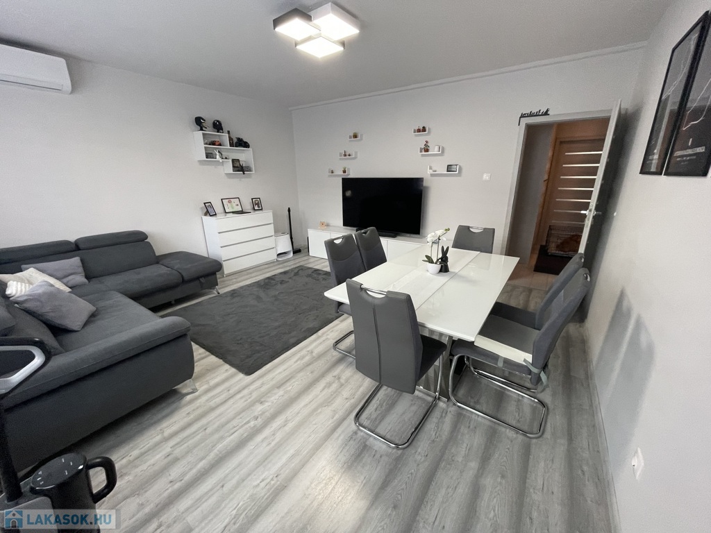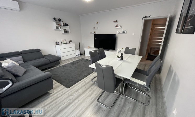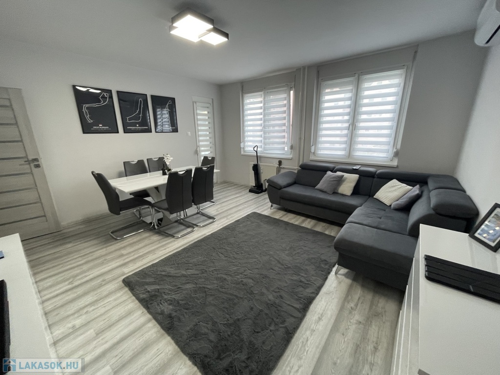 Korzó üzletház közvetlen szomszédságában eladó egy 87 m²-es, első emeleti, erkélyes, 3 szoba + nappalis lakás, amely vezeték szintig felújított, igényes, modern kialakítással várja új tulajdonosát.