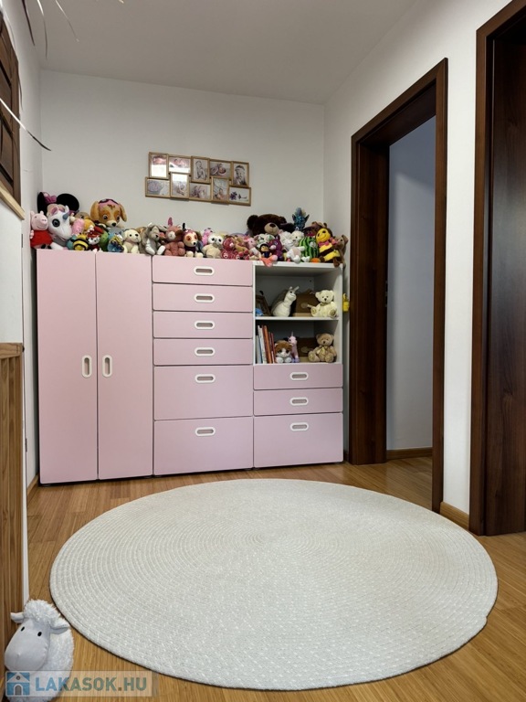 A felső szinten két teljes értékű, kényelmes méretű szoba kapott helyet, továbbá egy tágas fürdőszoba WC-vel, amely ideálisan szolgálja a családi vagy akár többgenerációs használatot is.