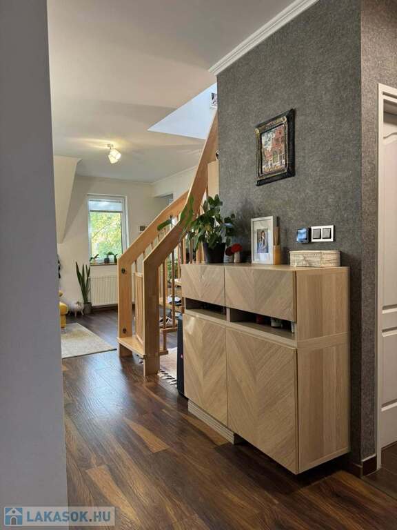 Az ingatlan tágas, világos terekkel és átgondolt elrendezéssel biztosít kényelmes otthont két szinten.