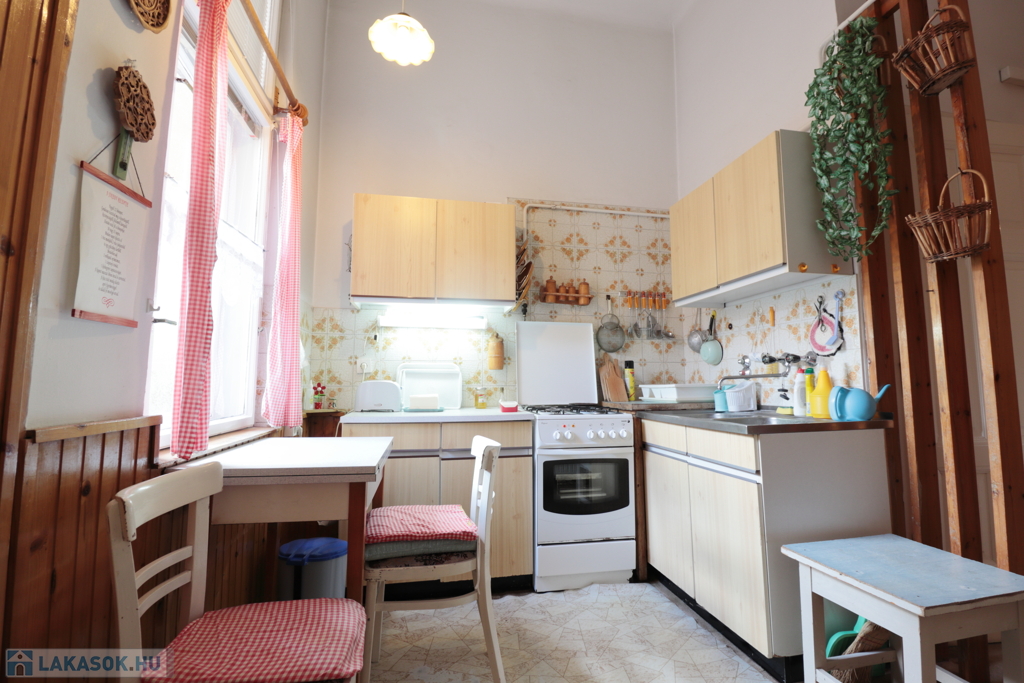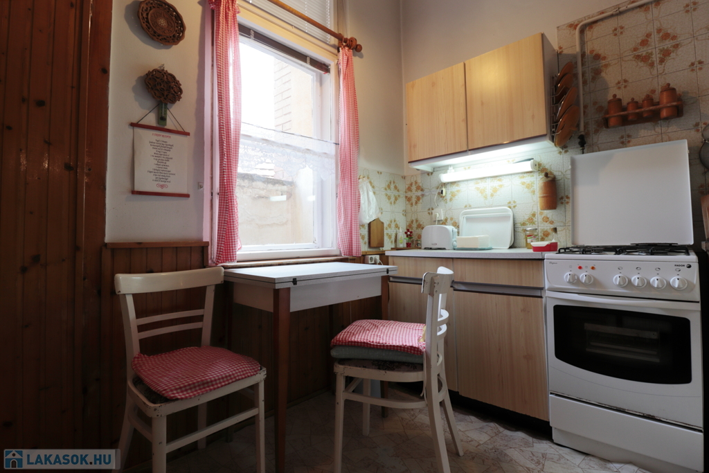 A lakásban két utcafronti nagy szoba, egy közlekedő folyósó, konyha, kamra, fürdő és különálló WC található. A társasházi lakás egyedi elszámolású, fűtése radiátorkörös gázkazán. A lakáshoz tartozik a társasházi alapító okirat szerinti önálló garázs, tároló és saját kicsi kert. A lakás tehermentes és azonnal birtokbavehető. Hitel felvételével is megvásárolható ingatlan, kérje személyre szóló bankfüggetlen kalkulációját az irodától!