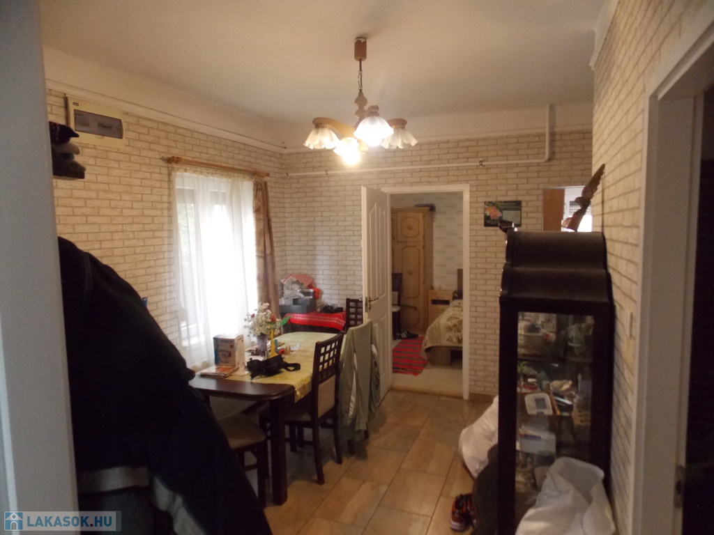 A földszinten található egy 25 m2-es nagy szoba, 19 m2-es előtér, 5 m2 fürdő+wc, 7 m2 félszoba, 7m2 konyha+ 3 m2 kamra.