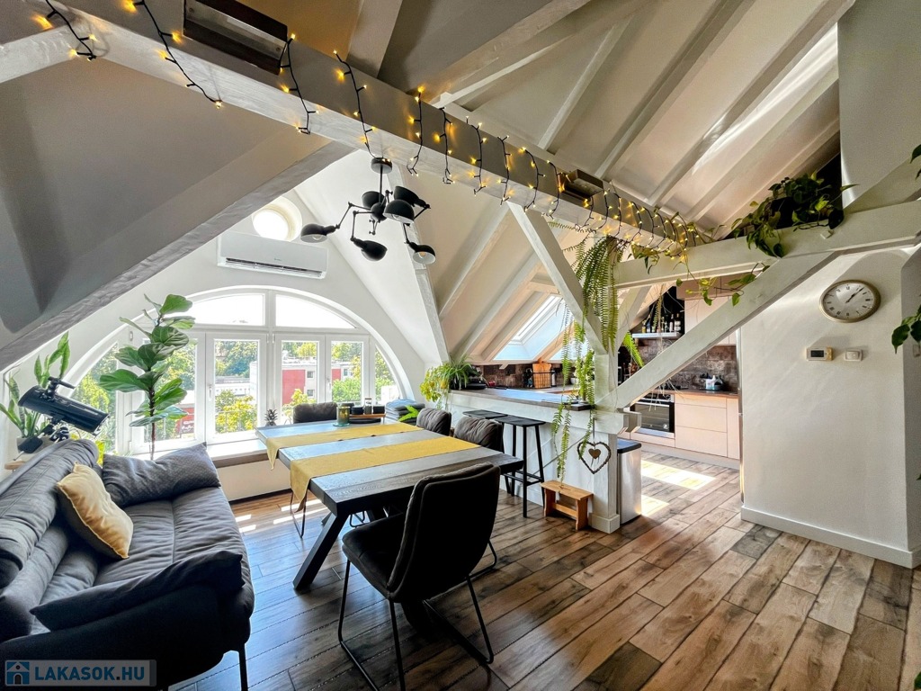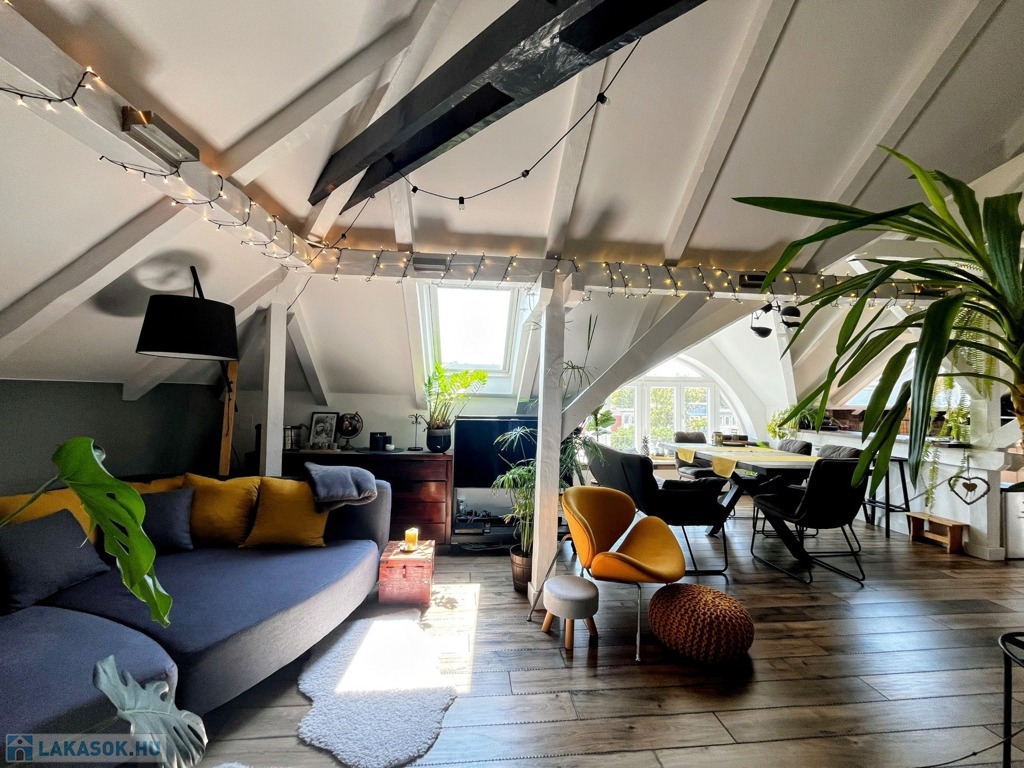 A 104nm-es lakás a Bajnok utca egy impozáns épületének zárószintjén, 1991-ben került kialakításra, és 4 éve teljes felújításon esett át. 3 szoba, nagy, fényes nappali/étkező és konyha, fürdő/wc, wc áll a tulajdonos rendelkezésére.