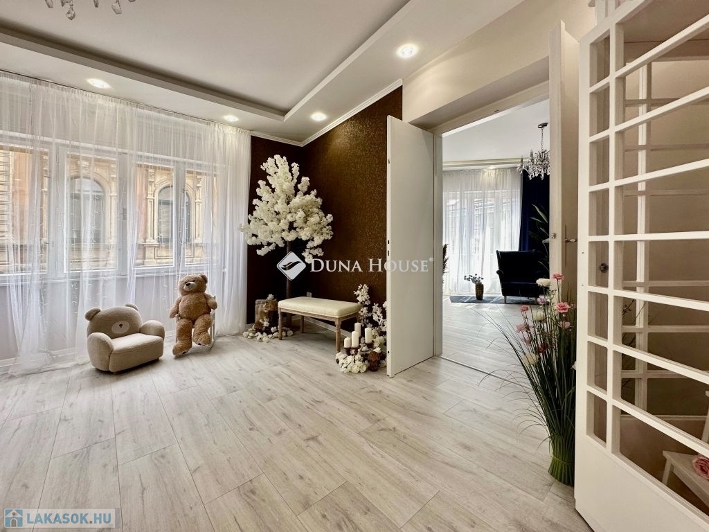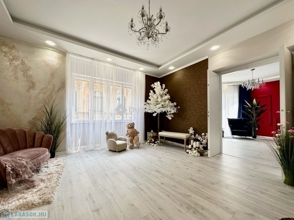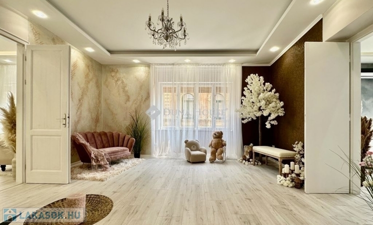 Impozáns, nagy polgári prémium lakás eladó Pécs történelmi belvárosának szívében sokoldalú hasznosítási lehetőségekkelPécs egyik legszebb részén, a patinás történelmi belvárosban kínálunk megvételre egy első emeleti, kivételes adottságokkal rendelkező lakást, amely teljes körű, prémium minőségű felújításon esett át az elmúlt években.A lakás jelenleg egy jól működő, bejáratott fotóstúdióként üzemel, amely stabil ügyfélkörrel, kiforrott arculattal és rendszeres bevétellel rendelkező vállalkozásként funkcionál. Az ingatlan jelenlegi kialakítása, a minőségi világítástechnika és a belső terek professzionális kialakítása a kreatív iparág igényeire szabott. A vevő akár azonnal folytathatja a tevékenységet a meglévő formájában, így az ingatlan nemcsak értékes tér, hanem jövedelmet hoz azonnal.Az ingatlan tágas terekkel, elegáns megjelenéssel és minőségi belsőépítészeti megoldásokkal rendelkezik, egyaránt kiváló választás lehet reprezentatív lakásnak, üzleti célú hasznosításra, vagy akár befektetésként, rövid távú kiadásra (Airbnb).Ezen kívül az elrendezés és az ingatlan színvonala lehetővé teszi olyan tevékenységek kialakítását is, mint esztétikai - szépség szalon, orvosi vagy természetgyógyászati magán rendelő, pszichológiai vagy coaching praxis, illetve egyéb magas színvonalú szolgáltatást nyújtó vállalkozás működtetése. A belvárosi elhelyezkedés és a reprezentatív környezet kifejezetten vonzóvá teszi ezeket a felhasználási lehetőségeket befektetők számára is.Lakásként visszaalakítható, de három különálló apartman kialakítása is elő van készítveA lakás jelenleg egyetlen egységként funkcionál, de szerkezetileg és gépészetileg úgy került kialakításra, hogy akár három külön bejáratú lakássá is könnyedén átalakítható. A víz-, villany-, konyhai és fürdőszobai kiállások ehhez már rendelkezésre állnak, így minimális átalakítással kiváló befektetési lehetőségként funkcionálhat a belváros szívében, ahol az ilyen adottságú ingatlanok ritkaságszámba mennek.Hangulatos udvar, kilátással a TV-toronyraAz épület gondozott belső udvara kellemes közösségi térként is szolgál, ahonnan szép kilátás nyílik a város egyik ikonikus jelképére, a TV-toronyra ez az apró részlet is hozzájárul az ingatlan különleges atmoszférájához.Főbb jellemzők:Elhelyezkedés: Pécs történelmi belvárosa, frekventált környezetbenSzint: Első emeletÁllapot: Teljes körűen, prémium minőségben felújítvaFunkció: Jelenleg egybenyitott térként funkcionál, de gyorsan átalakítható 3 önálló apartmanná vagy visszaalakítható nagyvonalú lakássáUdvar: Rendezett belső udvar, kilátással a TV-toronyraHasznosítás: Kiváló választás saját otthonnak, elegáns lakásként, rövid távú kiadásra (Airbnb), vagy akár vállalkozás céljára is(pl. fotóstúdió, esztétikai szalon, rendelő, magánpraxis vagy iroda)Ez az ingatlan valódi kuriózum a pécsi belvárosban: modern és sokoldalúan alakítható, ugyanakkor megőrzi a hely szellemiségét és eleganciáját.Ne maradjon le erről a különleges lehetőségről vegye fel velünk a kapcsolatot még ma, és tekintse meg személyesen!
