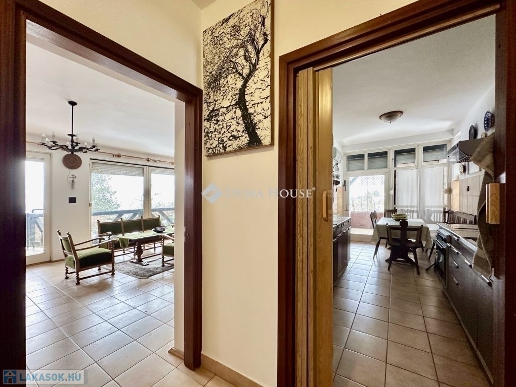 PécsMecsekoldal déli részén eladó kertkapcsolatos, panorámás otthon!A Szurdok dűlő csendes, városhoz közeli környezetében kínálunk megvételre egy 106 nm-es lakóterű ingatlant, melyhez saját kertkapcsolat és napos, panorámás terasz tartozik.Az otthon 3 különálló hálószobával és egy tágas közel 40m2-es nappalival rendelkezik, így ideális családi élettér kialakítására.A külön konyha közvetlen kijárattal kapcsolódik a kerthez, a fürdőszoba mellett vendég WC is rendelkezésre áll. A komfortot padlófűtés és klímaberendezés biztosítja.A lakásban rengeteg fantázia rejlik, átalakítással egy igazán modern, mai igényeknek megfelelő otthon varázsolható belőle.2db tároló és 1db garázsbeálló is tartozik az ingatlanhoz.Nyugalom, zöld környezet és városi közelség egy helyen kiváló választás hosszú távra.