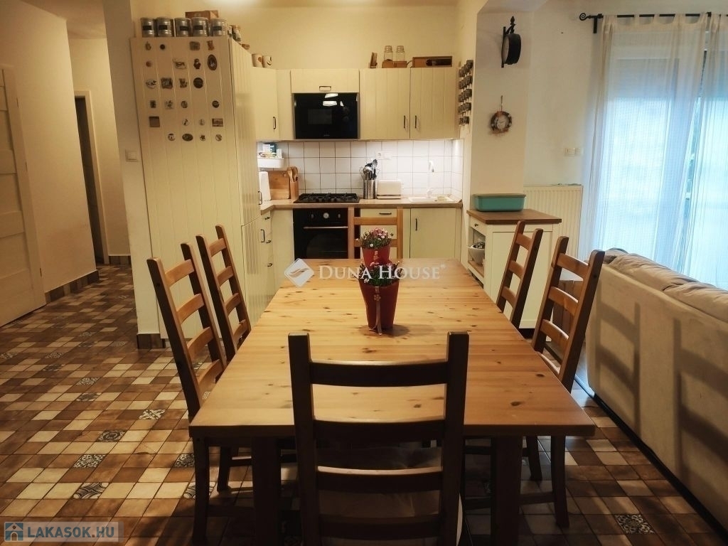 Eladásra kínálunk egy egyszintes, 130m2-es , tégla szerkezetű, kertkapcsolatos lakást, amely nem csak egy lakóhely, hanem egy otthon, ahol az élet minden szépsége kiteljesedhet. A ház 1 nappalival és további 4 szobával rendelkezik, amelyek tágasak és világosak, köszönhetően a jól megtervezett elrendezésnek.Az ingatlan a kertkapcsolatnak köszönhetően különleges lehetőséget kínál a szabadtéri tevékenységekhez. A kert gondosan ápolt, tökéletes hely a kikapcsolódáshoz, a gyerekek játékára vagy akár egy családi barbecue est szervezésére.Belépve a tágas előszobába, azonnal érezhető a nyugodt, családias hangulat, amit a természetes fény és a modern, mégis időtálló belső kialakítás is erősít. A nappali a központi helyiség, ahol a család és a barátok összegyűlnek, hogy kellemes időt töltsenek együtt. A konyha és az étkező egy légtérben helyezkedik el, ideális helyszín a közös főzésekhez és étkezésekhez.