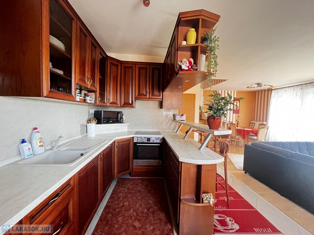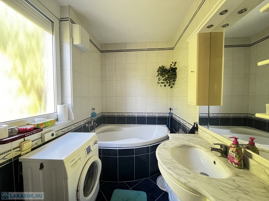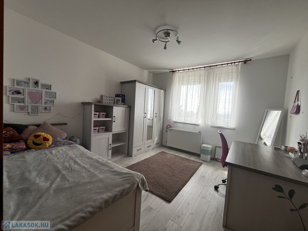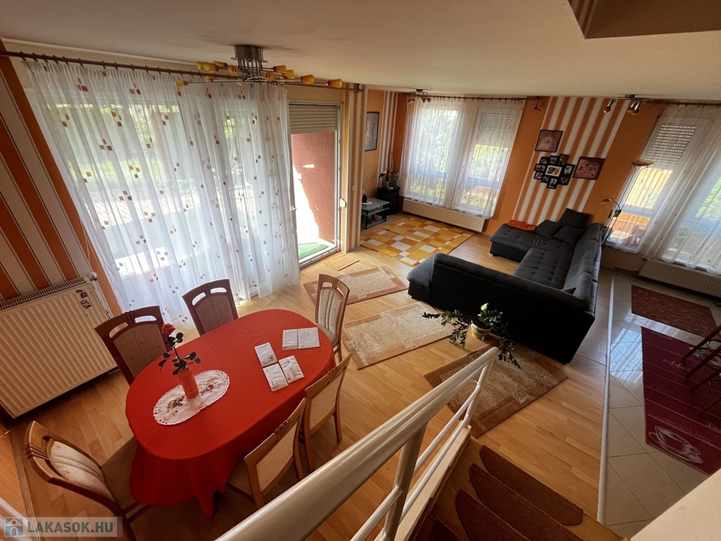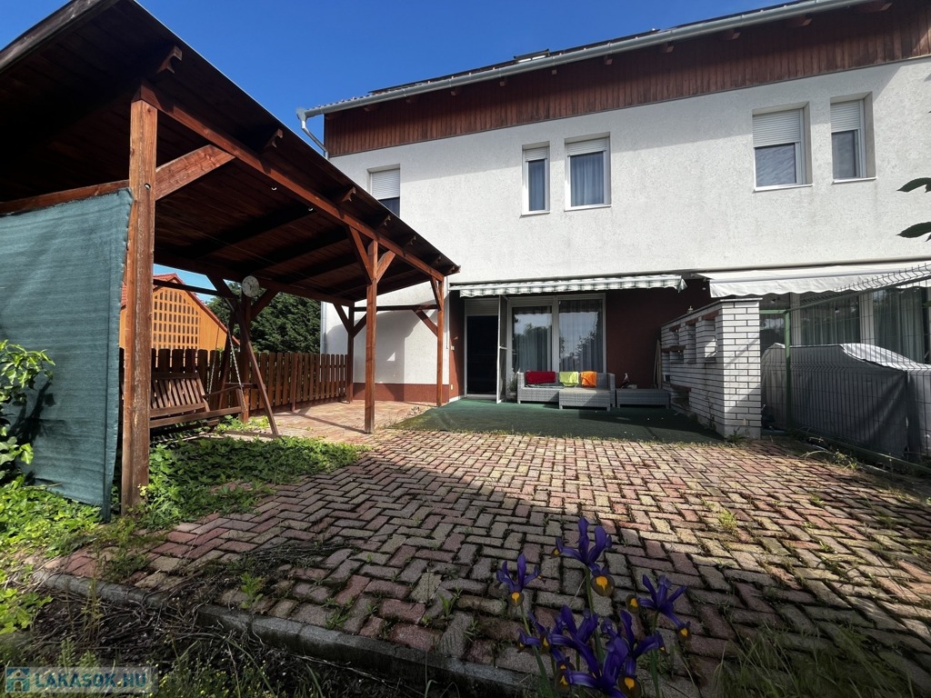 A lakás hasznos alapterülete 105 nm, a kert kb. 80 nm. A lakáshoz tartozik egy szabadtéri parkoló, valamint egy VALÓDI duplagarázs, ahova tényleg befér két nagyméretű autó, és még mindig marad benne hely.