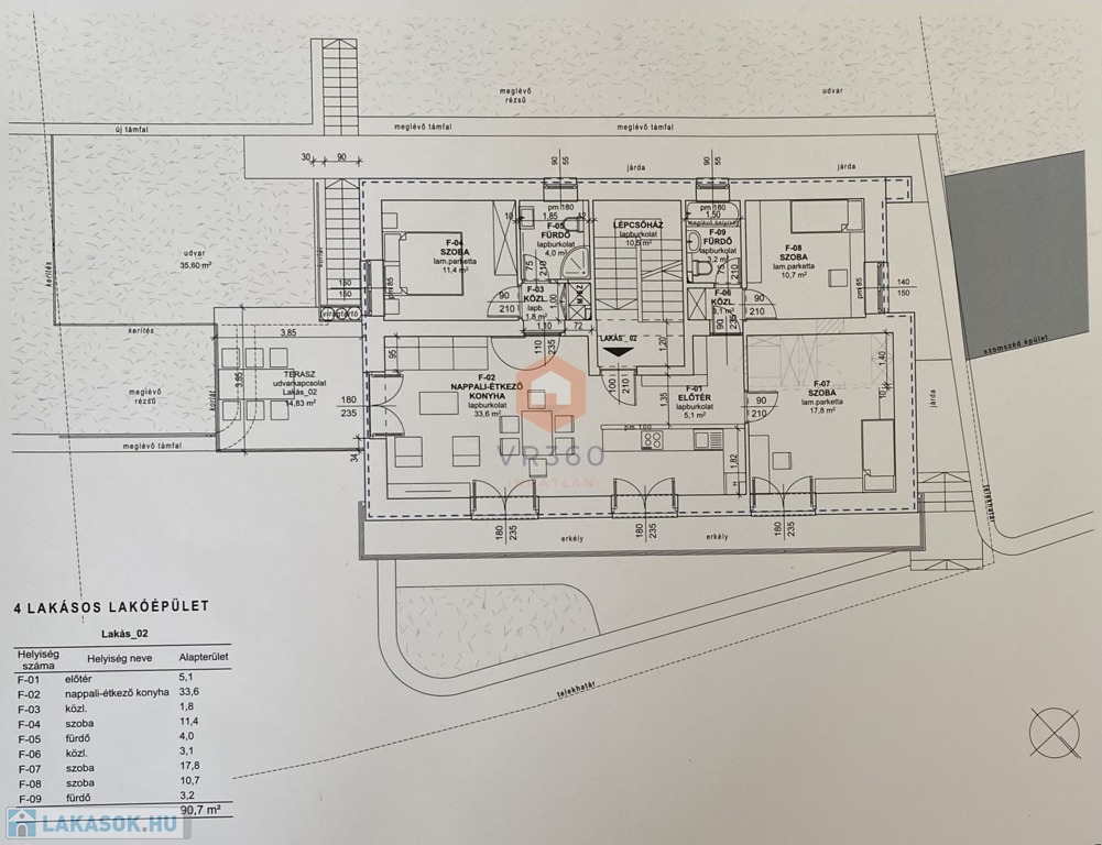 Az ingatlan egy 2024-ben átadott, mindössze 4 lakásos társasház első emeletén található, egy zsákutca végén, így garantált a nyugalom és a zavartalan pihenés.