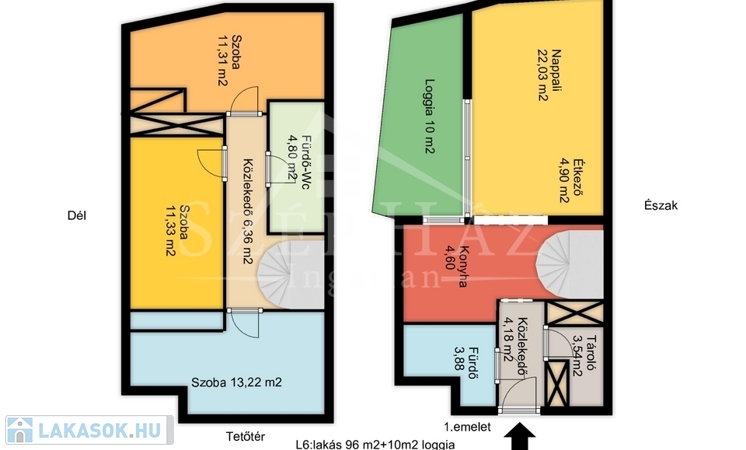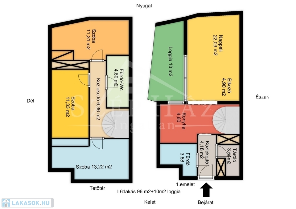 Ez a lakás belső szintes 3 külön bejáratú szobából +amerikai konyhás nappalibó, 2 fürdőszobából, tárolóból áll, és a 10m2 es terasz biztosítja a kényelmet és a jó helykihasználást.