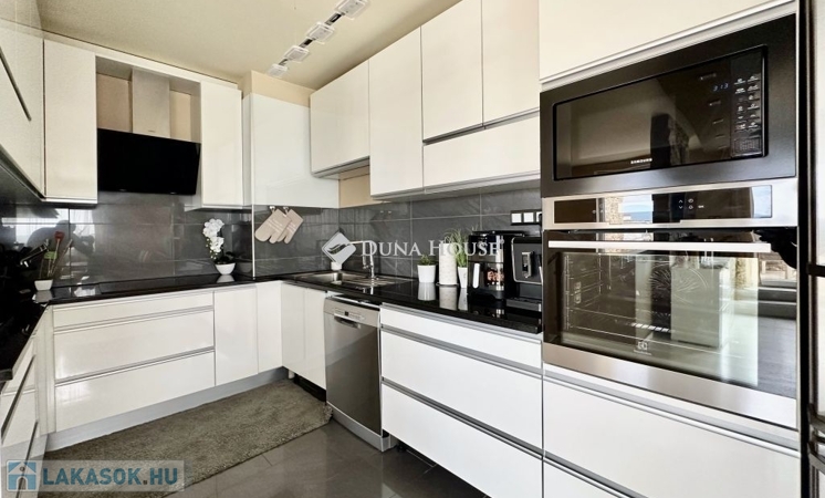 Eladó panorámás, modern lakás tetőterasszal Fellbach lakópark, PécsExkluzív lehetőség a közkedvelt Fellbach lakóparkban: eladásra kínálunk egy kiváló elrendezésű, világos, modern kialakítású téglalakást, páratlan kilátással a Mecsekre. Az ingatlan egy lifttel ellátott társasház legfelső szintjén található, igényes, rendezett környezetben.Főbb jellemzők:Tágas amerikai konyhás nappaliNagyméretű tetőterasz elektromos árnyékolóvalKét külön nyíló hálószobaFürdőszoba + külön WCMinden helyiség klimatizáltSaját, zárható tárolóTávfűtés egyedi mérővelParkolás közvetlenül az épület előtt, mindkét irányból megközelíthetőenA lakás modern burkolatokkal, stílusos belsőépítészeti megoldásokkal, kiváló természetes fényviszonyokkal rendelkezik. Ideális választás azok számára, akik igényes, jól megközelíthető, nyugodt környezetben keresnek prémium ingatlant. További információért és megtekintésért keressen bizalommal!