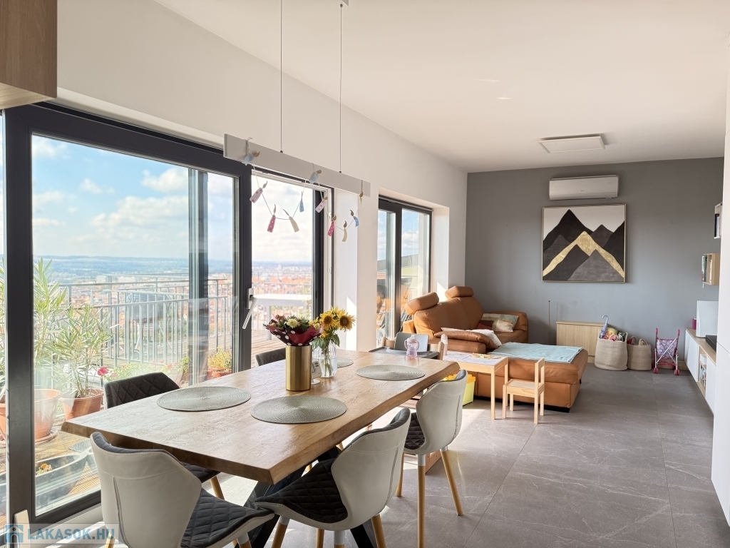 Pécs–Mecsekoldal könnyen megközelíthető, exkluzív részén, Havihegyen eladó egy 2021-ben épült, belső kétszintes, örökpanorámás, kiváló állapotú 80 m²-es lakás, dupla terasszal (összesen +60 m²), saját tárolóval és teremgarázshellyel (19 m²). Igény esetén a teljes bútorzattal együtt is megvásárolható!