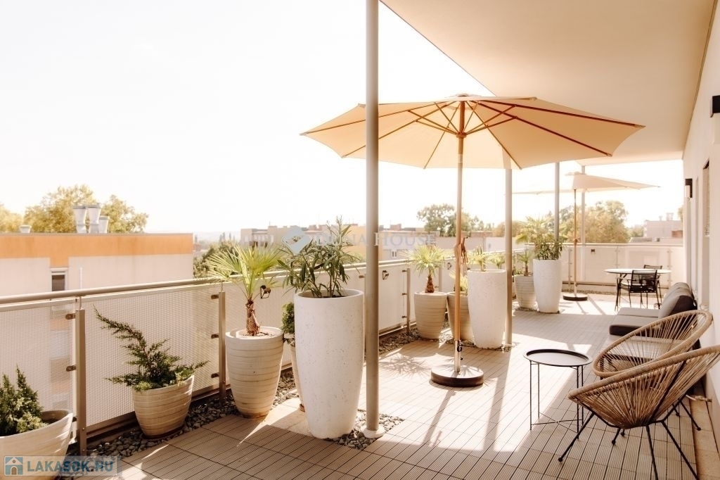 Az ingatlanhoz két nagyméretű fedett terasz tartozik (30 m² és 20 m²), amelyek mindkét nappaliból közvetlenül elérhetők – tökéletes helyszínt biztosítva pihenéshez vagy akár vendégfogadáshoz.