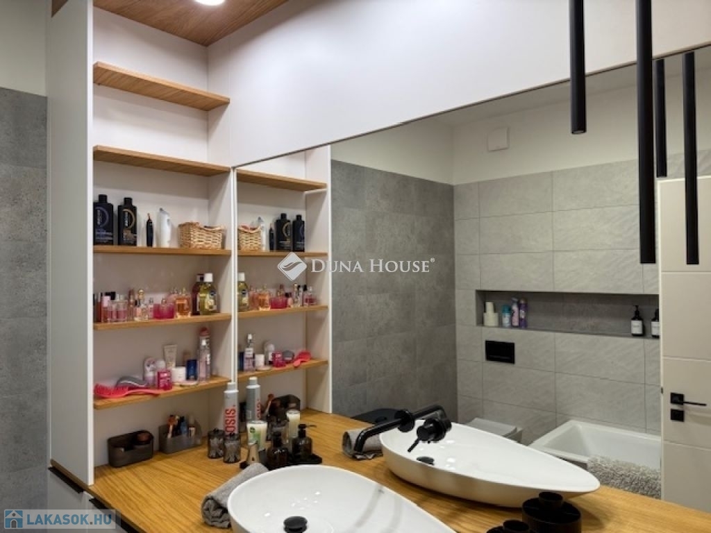 Eladó egy lenyűgöző, téglaépítésű ingatlan, mely egy több mint 3 300 m²-es, ős fenyőkkel övezett telekkel büszkélkedhet. A két társasház osztozik ezen a gyönyörű zöld területen, amely közös használatú medencével, panoráma tetőteraszokkal, valamint egy frissen telepített szolár zuhannyal kínál kikapcsolódási lehetőségeket a lakóknak. Az ingatlan, 3 hálószobás, 2 fürdővel és egy amerikai konyha-nappalival, illetve teraszkapcsolattal rendelkezik. A lakáshoz egy saját kertkapcsolat tartozik, ahonnan közvetlen lejutás biztosított a medencéhez . Ezenkívül 2 db tároló és egy teremgarázs hely is tartozik a lakáshoz, melynek az ára 15 Mft. Ez a páratlan ingatlan ideális választás azok számára, akik nyugalmat és természetközelséget keresnek, mindezt egy modern és kényelmes otthonban, ahol a közösségi terek és a környezetbarát megoldások különleges hangsúlyt kapnak. Ha érdekli ez az egyedülálló lehetőség, ne habozzon kapcsolatba lépni velünk további információkért és egy személyes megtekintésért.Az eladásra kínált lakásunk igazi ritkaság, hiszen számos extra jellemzővel rendelkezik. A medence és a panoráma tetőteraszok exkluzív élményt nyújtanak, lehetőséget adva arra, hogy a lakók a mindennapok során is élvezzék a természet közelségét és a környező táj látványát.