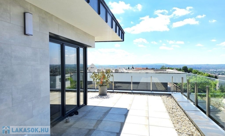 Pécs mecsekoldali részén eladó egy 2023-ban épült, 1. em-i, 106 nm-es lakótérrel rendelkező, 3 szoba+ amerikai konyha-nappali elosztású, dupla komfortos, minőségi anyagokból készült, sok extrával rendelkező, gáz kondenzációs kazánnal fűtött PENTHOUSE lakás, össz. 60 NM-ES PANORÁMÁS TERASSZAL.Az ingatlan kiemelt felszereltséggel és műszaki tartalommal rendelkezik:- 3 rétegű műanyag nyílászárók, elektormos alu redőnyökkel- magas minőségű burkolatok és szaniterek- saját gázkondenzációs kazán-padlófűtéssel- légkondicionáló berendezés helyiségenként (HŰTŐ-FŰTŐ KLÍMA)- INFRA SZAUNAAz ingatlan kiválóan alkalmas lakhatás és bérbeadás céljára egyaránt!Lehetőség van teremgarázsban gépkocsibeálló és tároló megvásárlására is össz. +12MFt áron.Az ingatlan 3 hónapon belül költözhető!I.ár: 189,9 M Ft