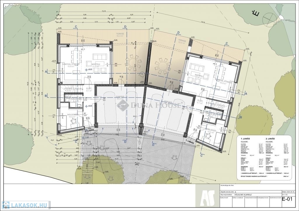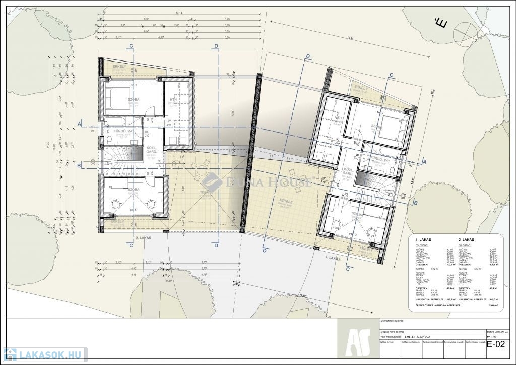 Pécs egyik legcsendesebb, erdőszéli részén, Felsőgyükésben eladó két exkluzív, újépítésű lakás!A neves tervező által megálmodott, elegáns, mindössze kétlakásos tégla társasház 2026 végén készül el. A belső kétszintes, kulcsrakész otthonok 149,5 m²-esek, saját hőszivattyúval, napelemmel, padlófűtéssel és plafonhűtéssel, rendkívül alacsony fenntartási költséggel.Főbb jellemzők:3 hálószoba + tágas nappali-konyha-étkeződupla komfort, háztartási helyiség35 m²-es dupla garázs + gépkocsi beálló90 m² teraszfelület + erkélyeksaját, kizárólagos használatú kert (630 és 582 m²)prémium burkolatok, szaniterek és nyílászárókmodern, elegáns kőburkolatos homlokzatIgazi ritkaság Pécsett: luxuskategóriás, energiatakarékos, erdőközeli otthon, minimális rezsivel.