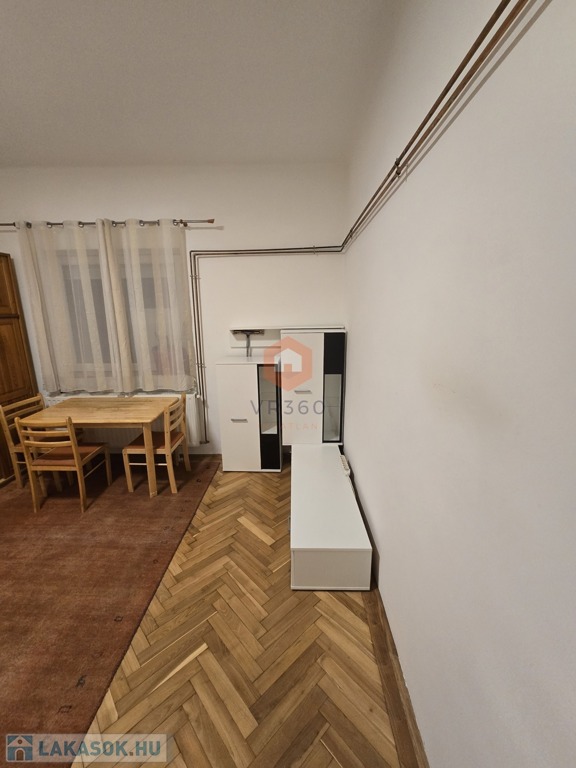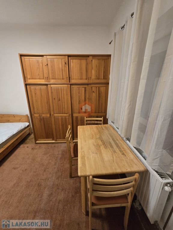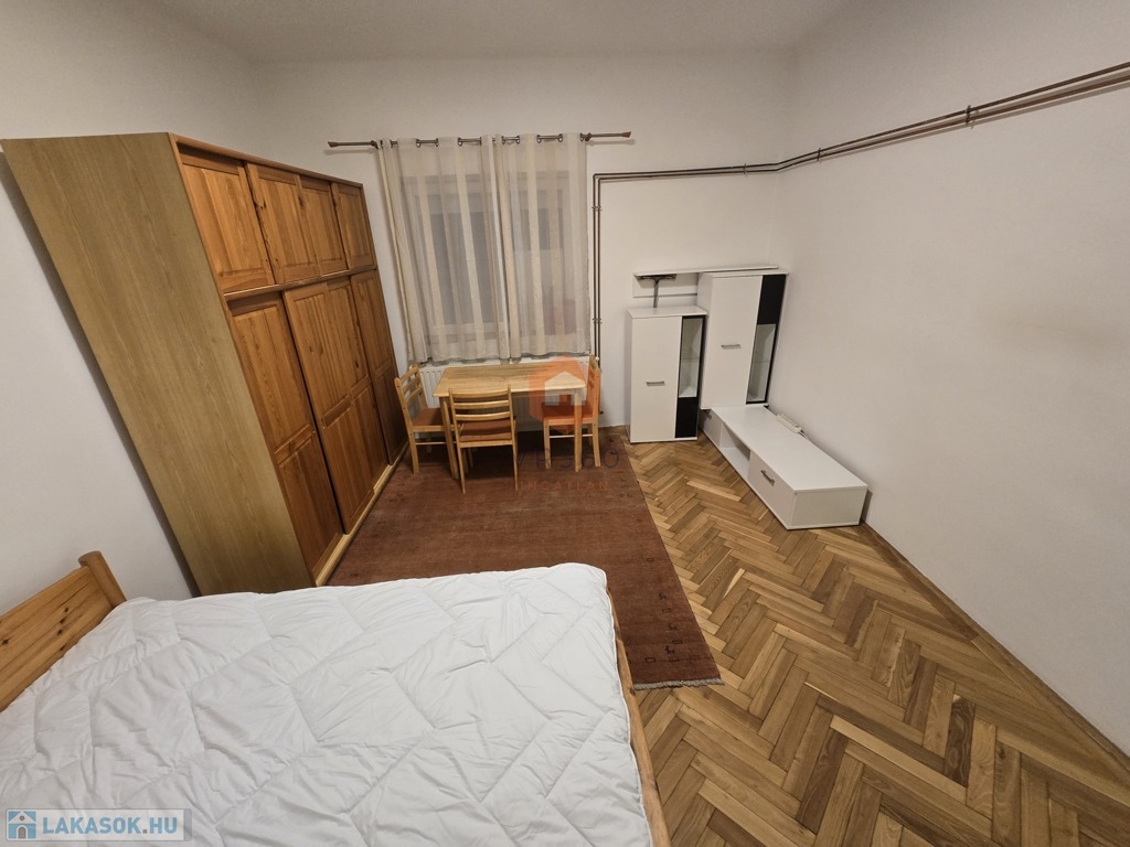 A szoba parkettás, a fürdőszoba és a WC külön helyiségben található.