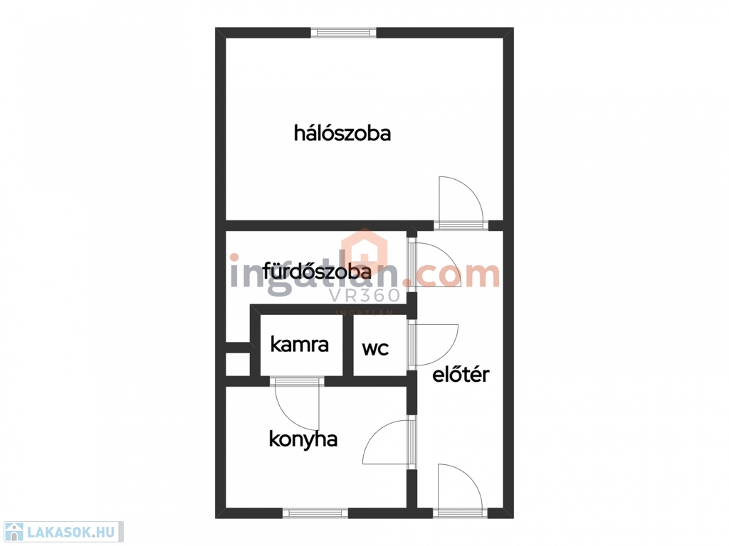 A szoba parkettás, a fürdőszoba és a WC külön helyiségben található.