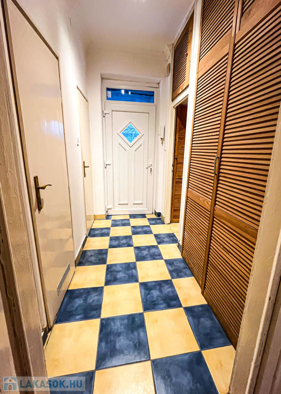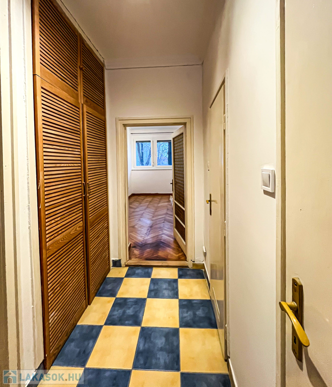 Az ingatlan földszinten található, elrendezése kiváló: 2 külön nyíló szoba, konyha, külön fürdő és WC, előszobában beépített szekrények, és egy tároló helység.