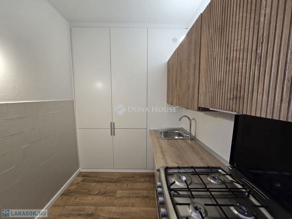 A felújítás a következőket érintette friss festés, mázolt ajtók és radiátorok, új laminált padló, új konyhabútor, valamint megújult beépített szekrényfrontok. Az előszoba tágasabb lett, a WC teljesen felújított, a fürdőszoba átlagos állapotú.