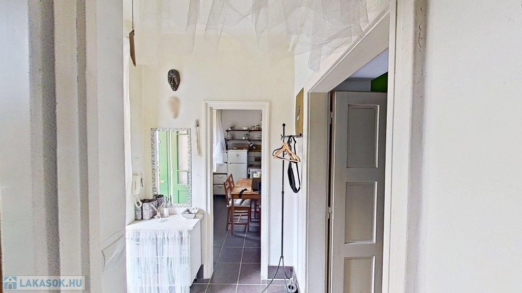 A lakás egy szépen karbantartott, belső udvaros társasház magasföldszintjén található. A belső udvar rendezett, főleg gyerekek számára értékes terület, homokozóval, hintákkal, zöld felületekkel.
