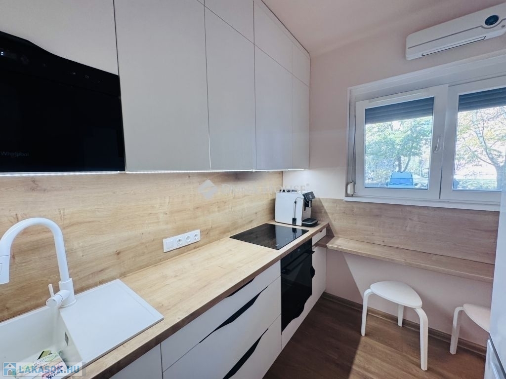 Eladásra kínálok egy igényesen, teljeskörűen felújított, magasföldszinti lakást Pécs közkedvelt uránvárosi részén, mindössze 8-10 percre az Orvosi Egyetemtől. Az ingatlan szinte soha nem volt lakott, így gyakorlatilag újszerű állapotban várja új tulajdonosát. A lakás teljes berendezéssel és bútorzattal együtt kerül eladásra, így akár azonnal kiadható vagy első otthonnak is tökéletes választás. A modern, gépesített konyhabútor és az átgondolt, stílusos belső kialakítás a mindennapi kényelmet szolgálja. Az ingatlan tehermentes, azonnal birtokba vehető, így ide csak költözni kell! Főbb jellemzők:
