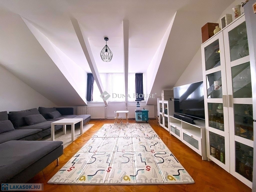 Pécsen, a közkedvelt Bánki Donát utcában eladó egy kiváló adottságokkal rendelkező tetőtéri téglalakás!A lakás bruttó 80 m²-es, nettó 50 m², míg a hasznos alapterülete 65 m², elosztása pedig rendkívül praktikus és élhető. A jól átgondolt alaprajznak köszönhetően 2 külön nyíló szoba és tágas nappali biztosítja a kényelmes életteret.A folyosóról nyílik egy kis háztartási helyiség, ahol a mosógép és szárítógép kényelmesen (hangszigetelten) elfér.Az ingatlan jó lokációban, gyerekbarát környezetben helyezkedik el, csendes, mégis jól megközelíthető környéken.Műszaki felszereltsége és állapota kiváló:- minőségi bejárati és beltéri ajtók- gáz-cirkó fűtés- a fürdőszobában padlófűtés- klimatizált, így nyáron is komfortosIdeális választás családoknak vagy befektetőknek egyaránt, akik egy jó elrendezésű, igényes otthont keresnek Pécs egyik kedvelt részén.