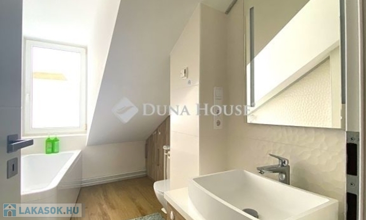 Pécsen, a közkedvelt Bánki Donát utcában eladó egy kiváló adottságokkal rendelkező tetőtéri téglalakás!A lakás bruttó 80 m²-es, nettó 50 m², míg a hasznos alapterülete 65 m², elosztása pedig rendkívül praktikus és élhető. A jól átgondolt alaprajznak köszönhetően 2 külön nyíló szoba és tágas nappali biztosítja a kényelmes életteret.A folyosóról nyílik egy kis háztartási helyiség, ahol a mosógép és szárítógép kényelmesen (hangszigetelten) elfér.Az ingatlan jó lokációban, gyerekbarát környezetben helyezkedik el, csendes, mégis jól megközelíthető környéken.Műszaki felszereltsége és állapota kiváló:- minőségi bejárati és beltéri ajtók- gáz-cirkó fűtés- a fürdőszobában padlófűtés- klimatizált, így nyáron is komfortosIdeális választás családoknak vagy befektetőknek egyaránt, akik egy jó elrendezésű, igényes otthont keresnek Pécs egyik kedvelt részén.